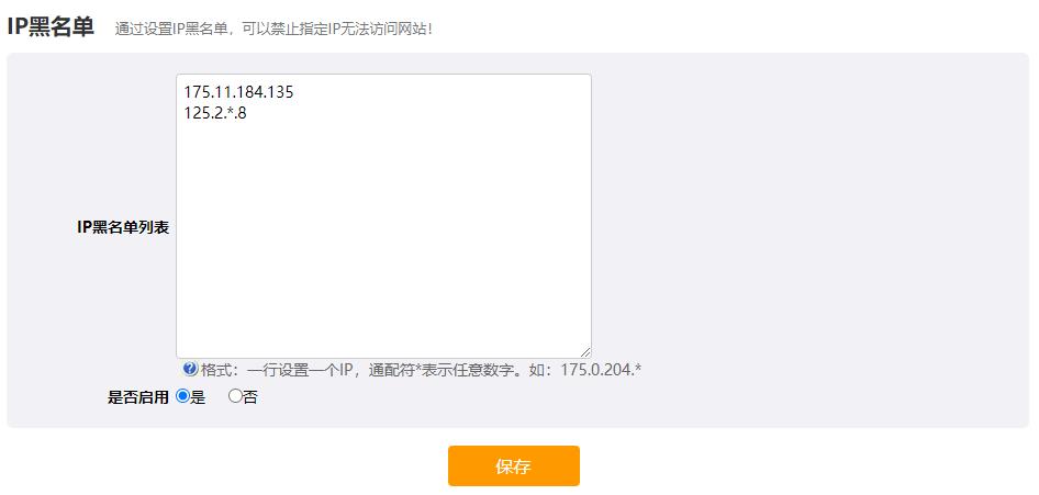 使用場(chǎng)景:網(wǎng)站被惡意IP高頻次訪問(wèn),嚴(yán)重影響打開(kāi)速度,可以惡意IP設(shè)為黑名單