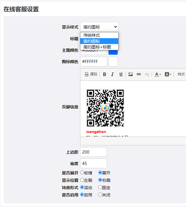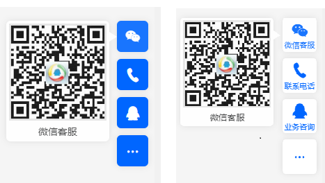 在線客服有三種樣式:分別為傳統(tǒng)樣式、簡約圖標(biāo)(圖左)、簡約圖標(biāo)+標(biāo)題(圖右)三種樣式